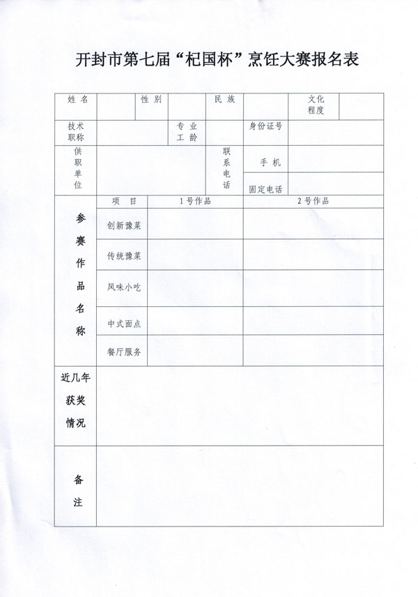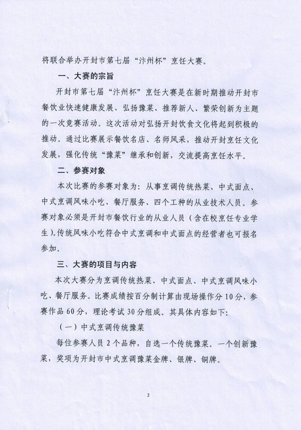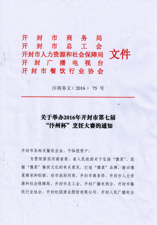 通知:关于举办2016年开封市第七届“汴州杯”烹饪大赛的通知